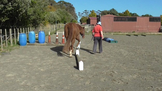 - The horse keeping his head straight for longer, building up duration one second at a time.