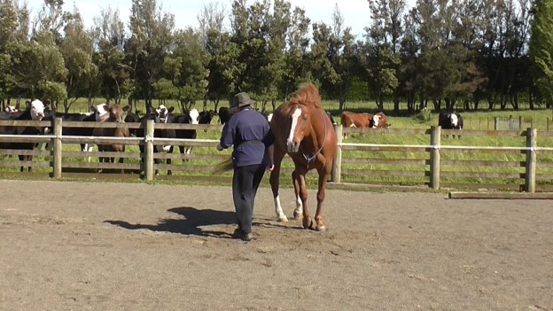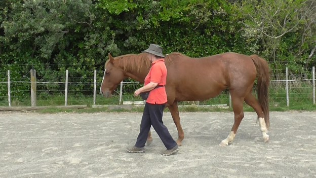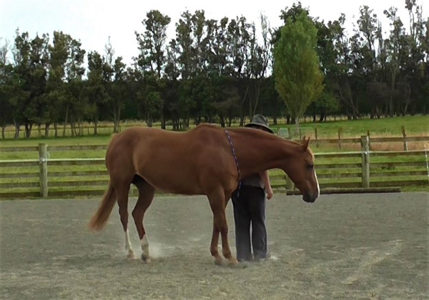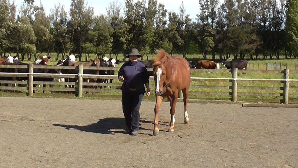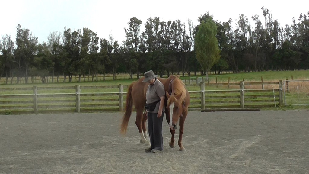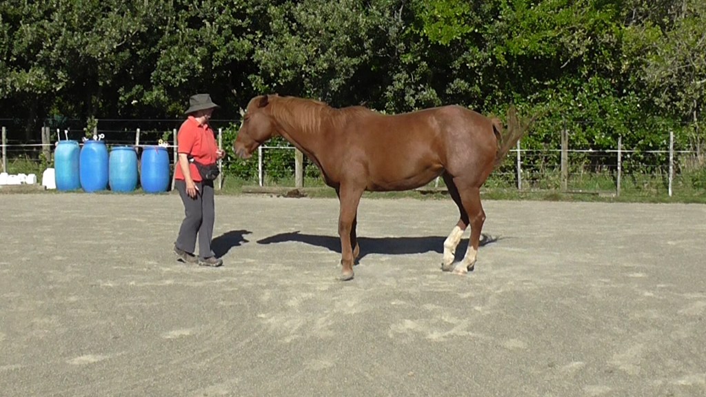 LP4 asks the horse to have his eyes, nose and shoulders well out ahead of us. That can be worrying for an anxious type horse who is more comfortable following than being out in front. Bolder, more confident horses will may find it easier. If you are developing a riding horse, it is important to understand this lack of confidence to ‘be out in front’.