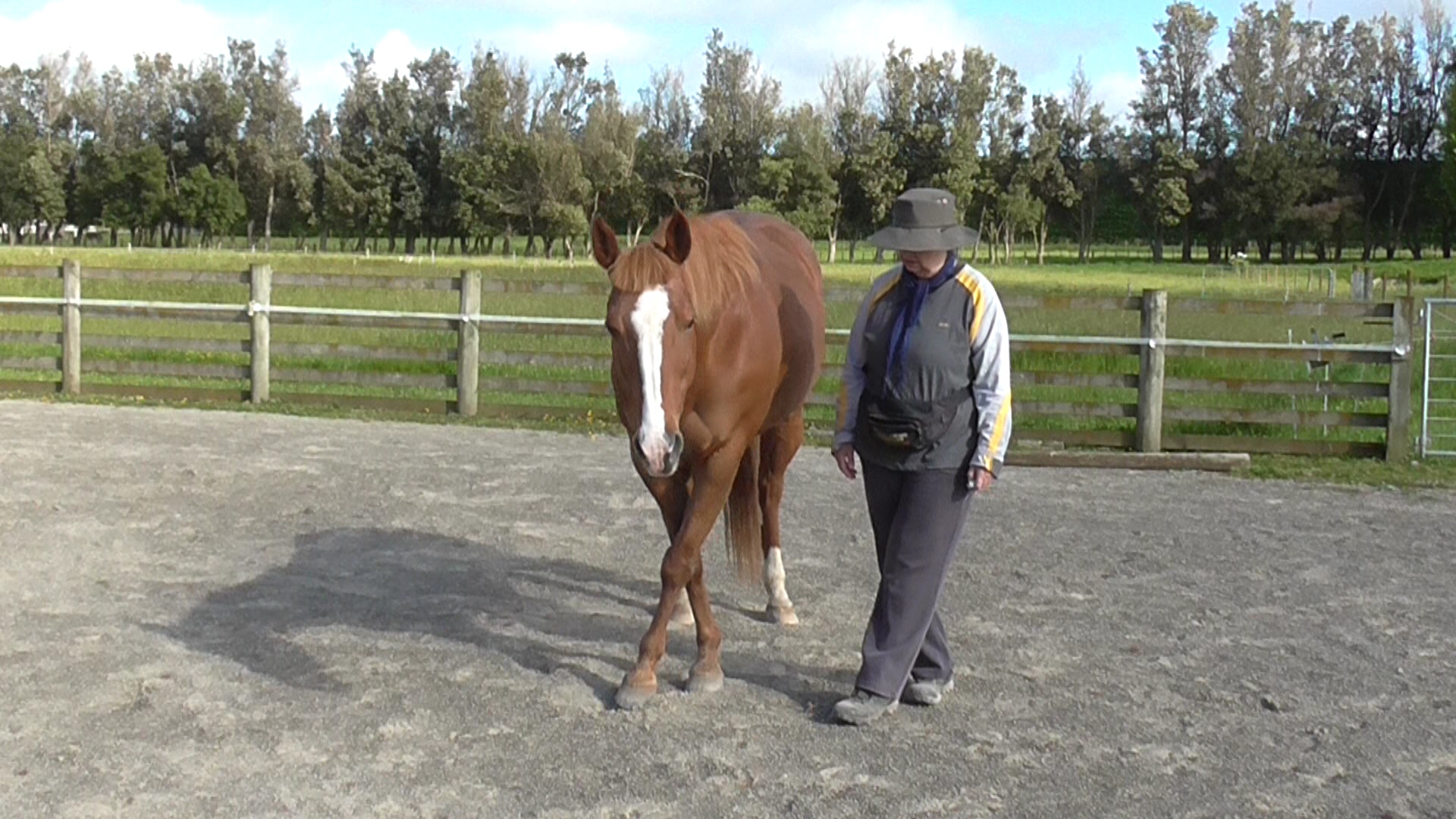 We also ensure walking straight by using a lane (horse in the lane, handler outside the lane) and by walking in straight lines between a series of targets. Once the horse understands the task, a small finger tap behind the withers and our voice signal, are usually all that is needed.