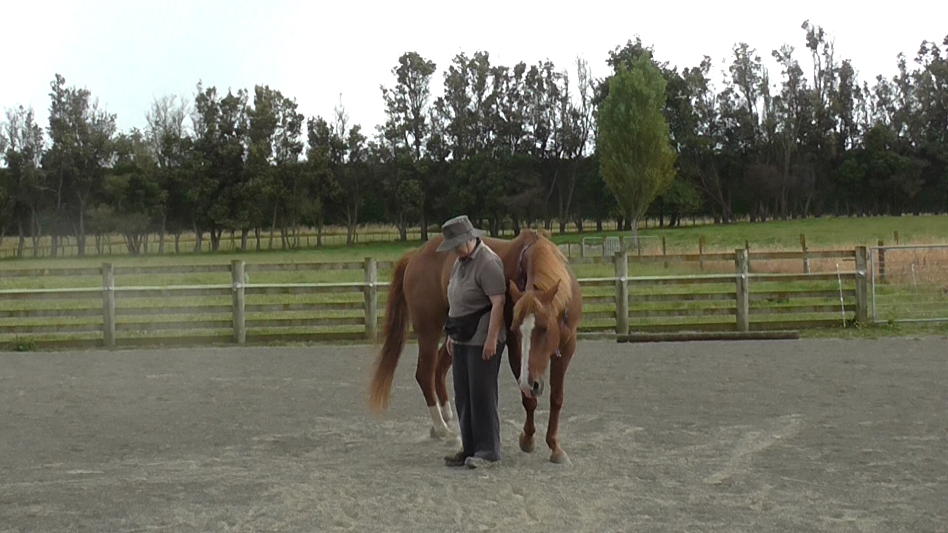 The activity of walking along together with the hand or stick behind the withers needs to become comfortable and ho-hum for the handler and the horse.