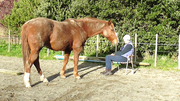 If you’ve set up the usual environment for a one-on-one date, the horse may initiate an interaction as more interesting than ignoring you. Whenever something seems broken, go back to Quiet Sharing of Time and Space to re-forge the bond.