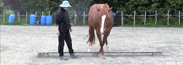 - The horse understands body language, voice and a gesture/touch signal at the girth to move sideways away from us as we sidestep toward him.